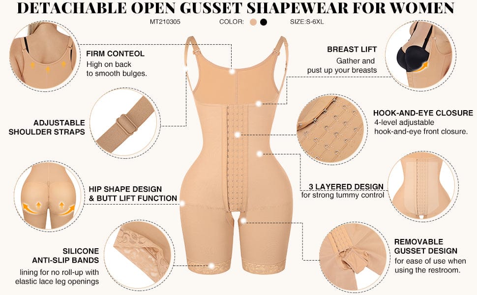 Der Bauchbereich dieses Taillenschlankers von Faja besteht aus 3 Schichten, die für eine besonders hohe Kompression am Bauch sorgen. Offenes Brustdesign zum Kombinieren mit Ihrem Lieblings-BH für eine wirklich individuelle Passform und nahtlose Unterkleidung. Außerdem rafft es Ihre Brust und macht Ihre Brust aufrechter und attraktiver. Das Design mit offenem Schritt erleichtert das Tragen von den Füßen bis zur Taille und erleichtert die Benutzung der Toilette, da Sie nicht alle Kleidungsstücke ausziehen müssen.